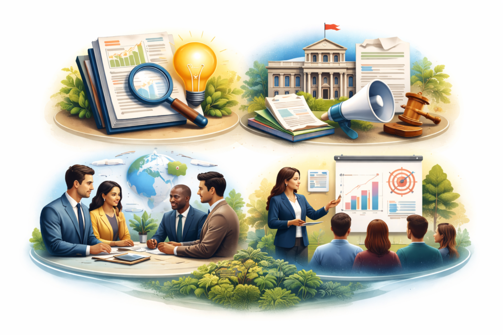 We actively engage with policymakers and stakeholders to advocate for inclusive, equitable, and sustainable policy reforms that address key socio-economic challenges.